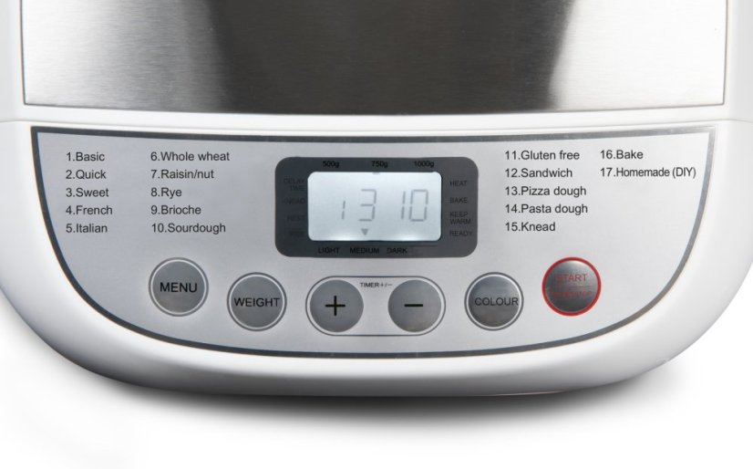 Plně automatická domácí pekárna se 17 automatickými programy. Pekárna sama těsto uhněte, při správné teplotě vykyne a sama přidá ve správný čas i další extra přísady.