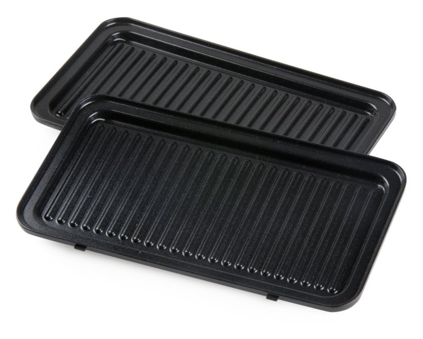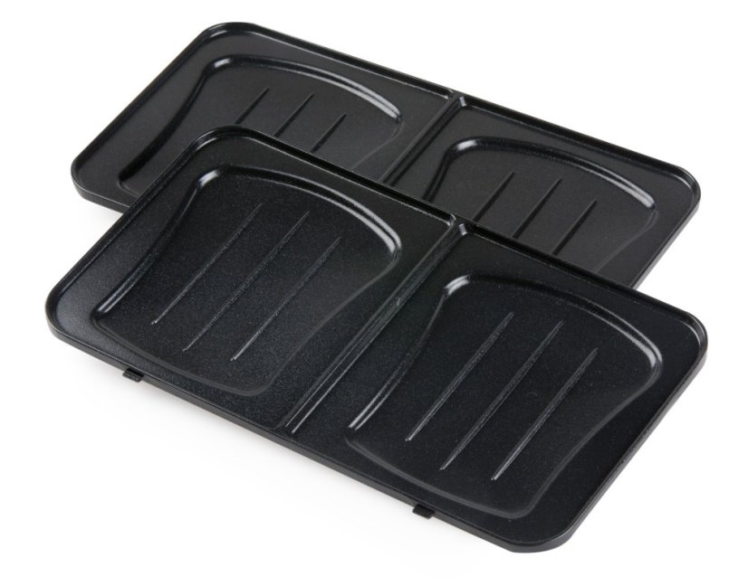V jednom balení dostanete tři přístroje: sendvičovač, vaflovač a panini gril. Jednotlivé pečící desky se snadno vyměňují a díky kvalitnímu nepřilnavému povrchu i snadno čistí.