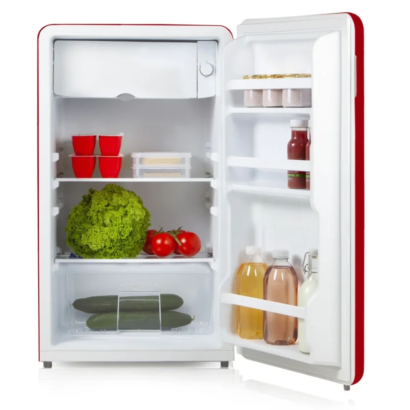 | Požadované vlastnosti | Termostat , Retro , Zásuvka na zeleninu , Dveře s magnetickým zámkem , Ekologické chladivo , Mrazící přihrádka |