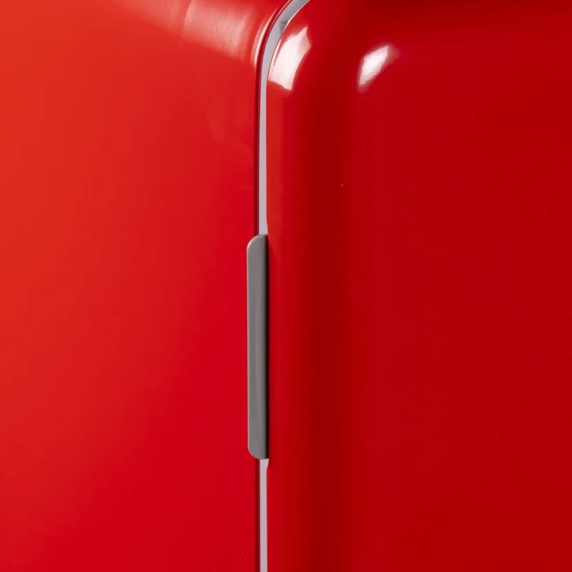 - Kompaktní retro lednice v sytě červené barvě, která okamžitě oživí interiér