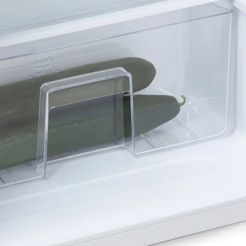 - Praktické vnitřní uspořádání: 2 skleněné police, zásuvka na zeleninu a 3 dveřní přihrádky