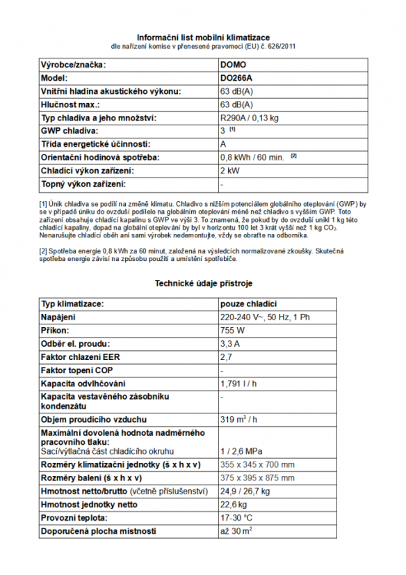 Mobilná klimatizácia 7000 BTU - DOMO DO266A