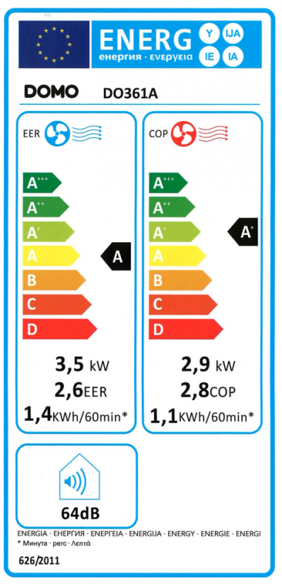 * EER (Energy Efficiency Rating): parameter charakterizujúci klimatizačné zariadenie pomerom výkonu chladenia k príkonu. Klimatizácia s vysokou hodnotou EER teda pracuje s vysokou účinnosťou prevodu energie na chlad a je tak aj úspornejšia.