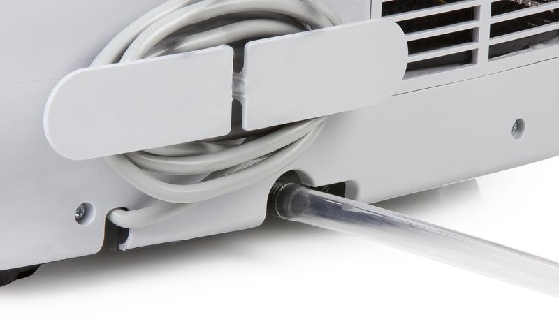 K základnej výbave klimatizácie patrí diaľkové ovládanie s displejom a integrovaným diaľkovým termostatom pre ľahké ovládanie a nastavovanie všetkých dostupných funkcií a sada na montáž flexibilnej hadice pre odvod teplého vzduchu na stenu. Pripájanie a odpájanie hadice uľahčujú príruby, vďaka ktorým je možné hadicu jednoducho nacvaknúť na prístroj aj na konzolu na stene. K nadštandardnej výbave klimatiácie sa potom radí sada na montáž do posuvných okien. S pojazdovými kolieskami je možné s klimatizáciou ľahko posúvať po miestnosti av prípade nutnosti prenosu do inej miestnosti môžete využiť aj pevné integrované madlá po bokoch prístroja. Bezúdržbová prevádzka potom umožňuje funkciu recyklácie kondenzovanej vody, alebo možnosť pripojenia hadice pre stály odtok kondenzátu.