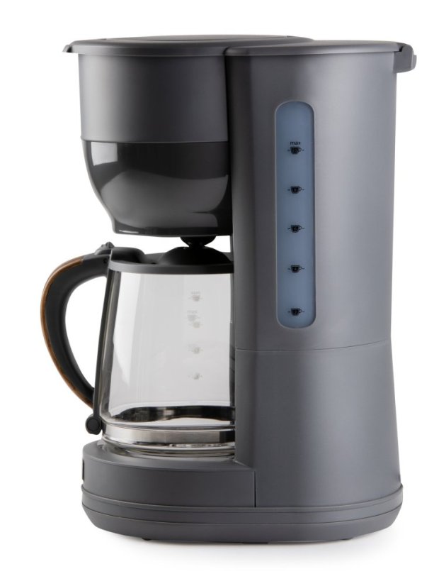 Prekvapkávač na kávu alebo čaj v štýlovom šedom dizajne s automatickým vypnutím pri nečinnosti. Elegantný dizajn dopĺňa sklenená kanvica s ukazovateľom hladiny a štýlovou rukoväťou vo vzhľade dreva.
