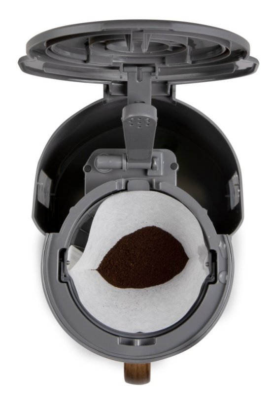 S kapacitou 1,25 litra v ňom uvaríte až 10 šálok kávy alebo čaju naraz. Odnímateľný držiak filtra je vhodný pre papierové filtre veľkosti 4.