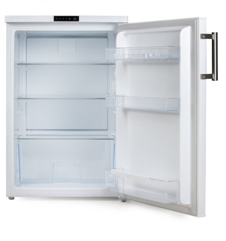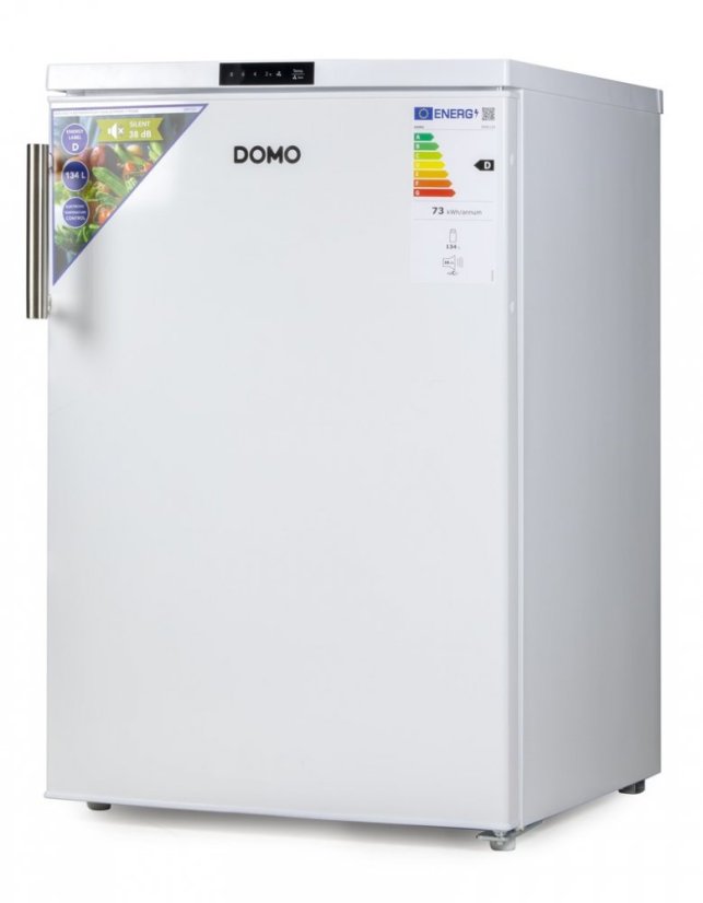 Voľne stojaca jednodverová monoklimatická chladnička s objemom 134 l. Úsporná energetická trieda D a praktická výška 84,5 cm. Digitálne nastavenie teploty. Nerezové madlo.