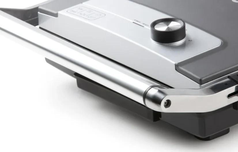 Univerzálny kontaktný gril na každodenné použitie pre jednoduchú a rýchlu prípravu perfektných steakov, mäsa do hamburgerov aj rýb a zeleniny. V grile tiež ľahko zapečiete vďaka plávajúcemu veku aj vysokej panini bagety, alebo sendviče. Tuk a šťavy vypečené z mäsa odtekajú otvorom v spodnej grilovacej doske rovno do vyberateľnej nádobky. Vďaka inovovanému plne tepelne odizolovanému veku a tepelne izolovanej rukoväti veka sa stáva práca s grilom veľmi bezpečnou. Grilovanie vám tiež spríjemní možnosť upraviť sa teplotu grilovacích dosiek pomocou plynulo nastaviteľného termostatu.