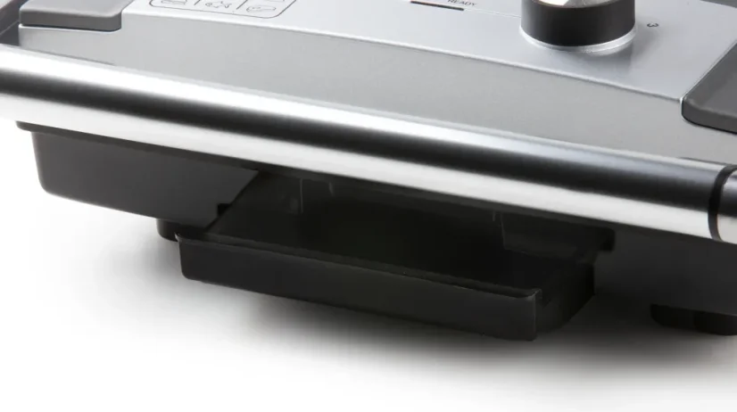 - Odtokový kanálik a vyberateľná nádobka na prebytočný tuk a šťavy