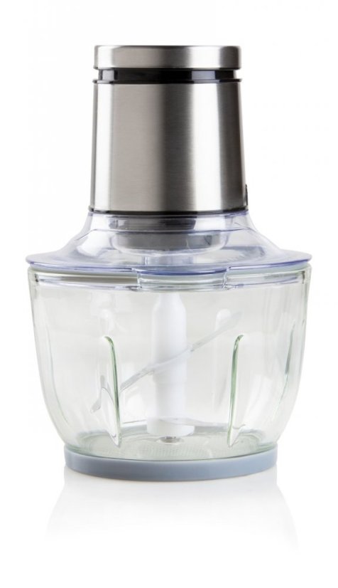 Výkonný motor elektrického sekáčika potravín v kombinácii s veľmi ostrým nožom so štyrmi čepeľami zvládne ľahko a precízne nasekať akúkoľvek zeleninu, mäso, orechy aj syr, alebo rozdrviť ľad. Čepele noža sú v nádobe natočené tak, aby obsiahli naraz celý objem nádoby a efektívne a rýchlo tak nasekali všetky vložené suroviny za čo najkratšiu dobu. Dobu kosenia je možné jednoducho dávkovať vďaka pulznej funkcii motora jednoduchým stlačením dlane na vrchnú časť motora. Vždy tak máte výkon plne pod kontrolou a dosiahnete presne taký stupeň nasekania ako si budete priať. Nádoba sekáčika disponuje veľkým objemom 1,4 litra a je vyrobená z pevného skla. Bezpečnosť práce so sekáčikom potom zaistí poistka proti spusteniu bez správneho nasadenia motorovej časti, madla nádoby na prenášanie a protišmyková guma nádoby.