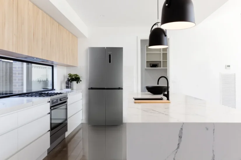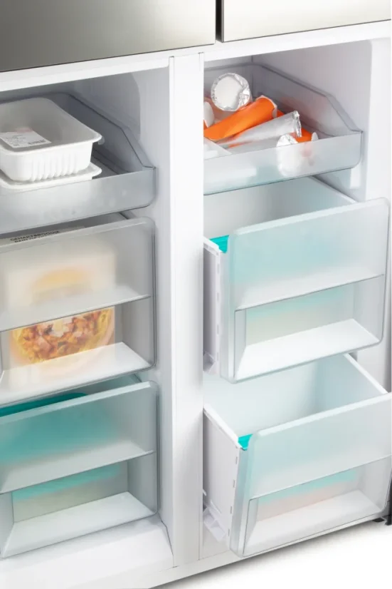 Každý väčší šéfkuchár ocení vnútorný priestor chladničky bez stredového stĺpika a tým dosiahnutie extra veľkého priestoru na chladenie aj veľkých kusov potravín (torty, šunka s kosťou atď...).